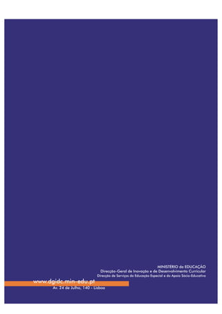 Este documento fornece um manual de apoio à prática da educação especial em Portugal. Apresenta informações sobre a organização e funcionamento da educação especial de acordo com a legislação portuguesa, o processo de avaliação e intervenção, as respostas educativas disponíveis e instrumentos para avaliação e elaboração de programas educativos individuais.
