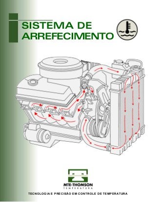 Este documento fornece informações sobre sistemas de arrefecimento de motores a combustão interna. Explica a importância do controle de temperatura, os tipos de sistemas de arrefecimento, e os componentes e funcionamento dos sistemas de arrefecimento a água. Também discute a manutenção e diagnóstico de falhas desses sistemas.