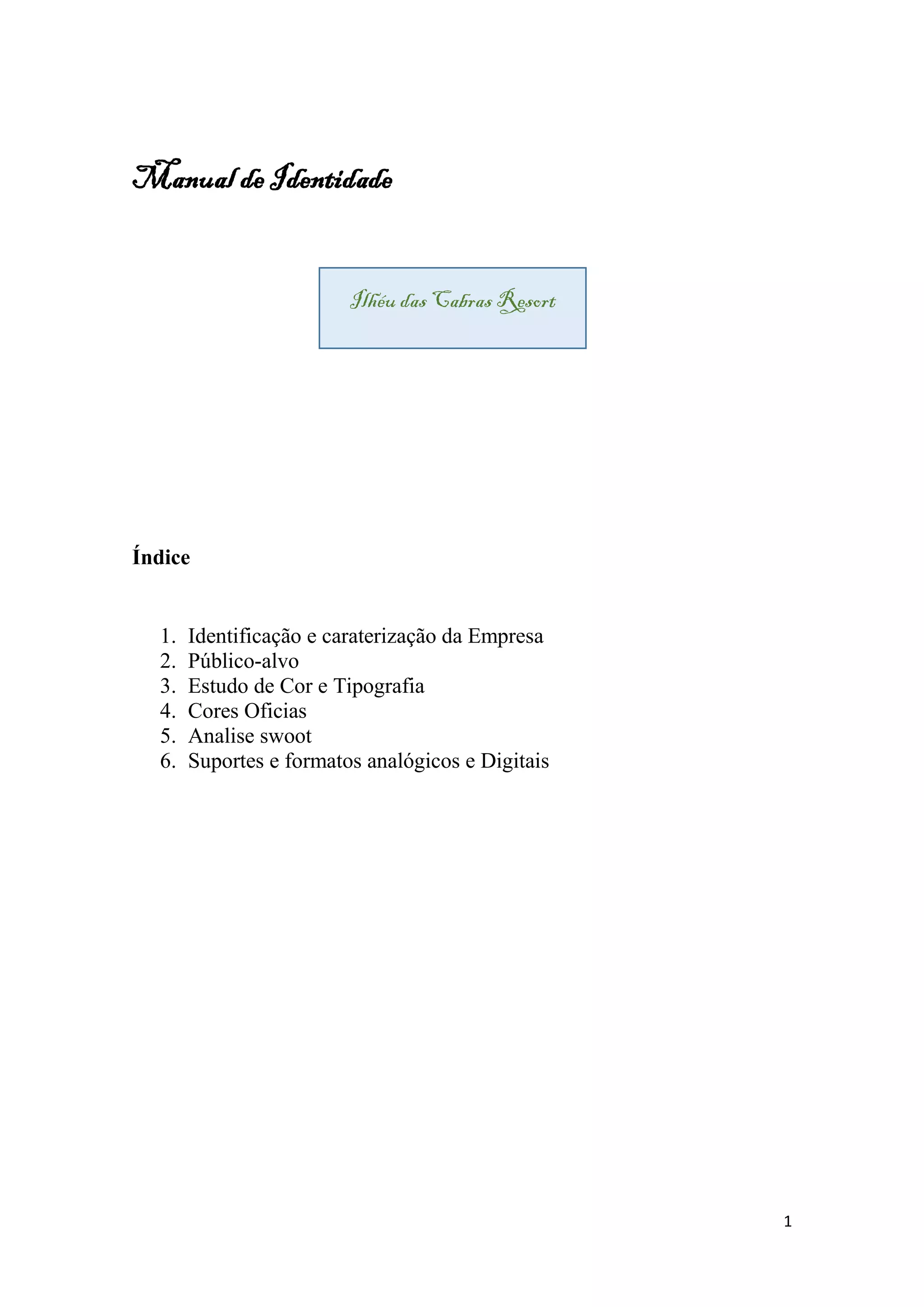 O documento descreve um resort fictício localizado no Ilhéu das Cabras em São Tomé e Príncipe. O resort oferece 150 quartos, salas de conferência, várias atividades como mergulho, passeios de barco e pesca, além de restaurantes, bar e música ao vivo aos fins de semana. O público-alvo são turistas de classe média-alta interessados em contato com a natureza e cultura local.