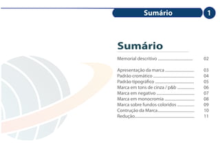 1) Os elementos visuais e padrões da marca como logotipo, cores, tipografia e formas de aplicação.