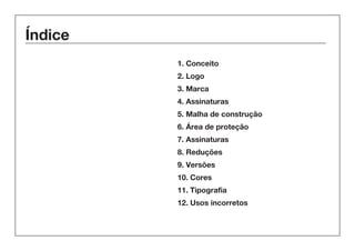 Este documento apresenta o manual de identidade visual de Alfredo Dutra, descrevendo o conceito, logo, marca, malha de construção, área de proteção, assinaturas, reduções, versões, cores e tipografias utilizadas, além de mostrar usos incorretos da identidade. O manual fornece todas as informações necessárias para a padronização e correta aplicação da marca.