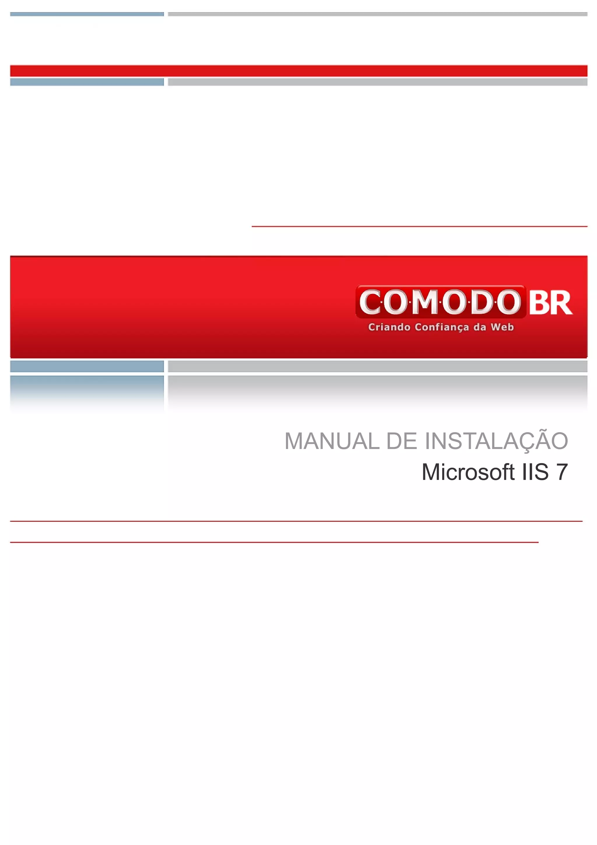 [1] O manual ensina a instalar um certificado SSL no servidor IIS para habilitar HTTPS em um site, incluindo designar o certificado ao site e instalar os certificados raiz e intermediários;