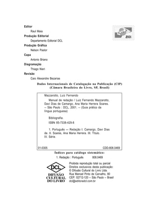 Este capítulo apresenta a teoria da redação, incluindo seus principais tipos (descrição, narração e dissertação), partes (introdução, desenvolvimento e conclusão) e qualidades (correção, clareza, concisão, originalidade, elegância e coesão). Também discute como superar bloqueios na redação através do treinamento contínuo, e fornece exemplos e modelos para ajudar na elaboração de esquemas e textos.