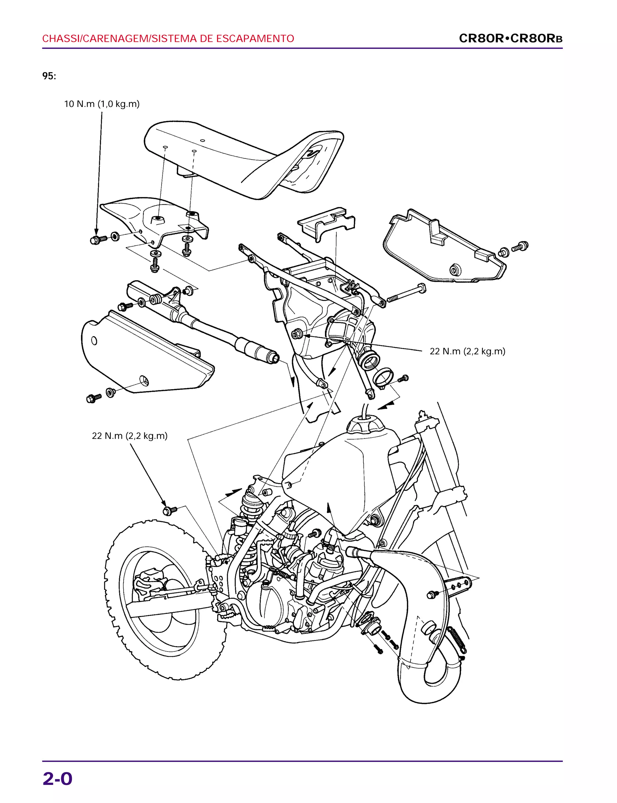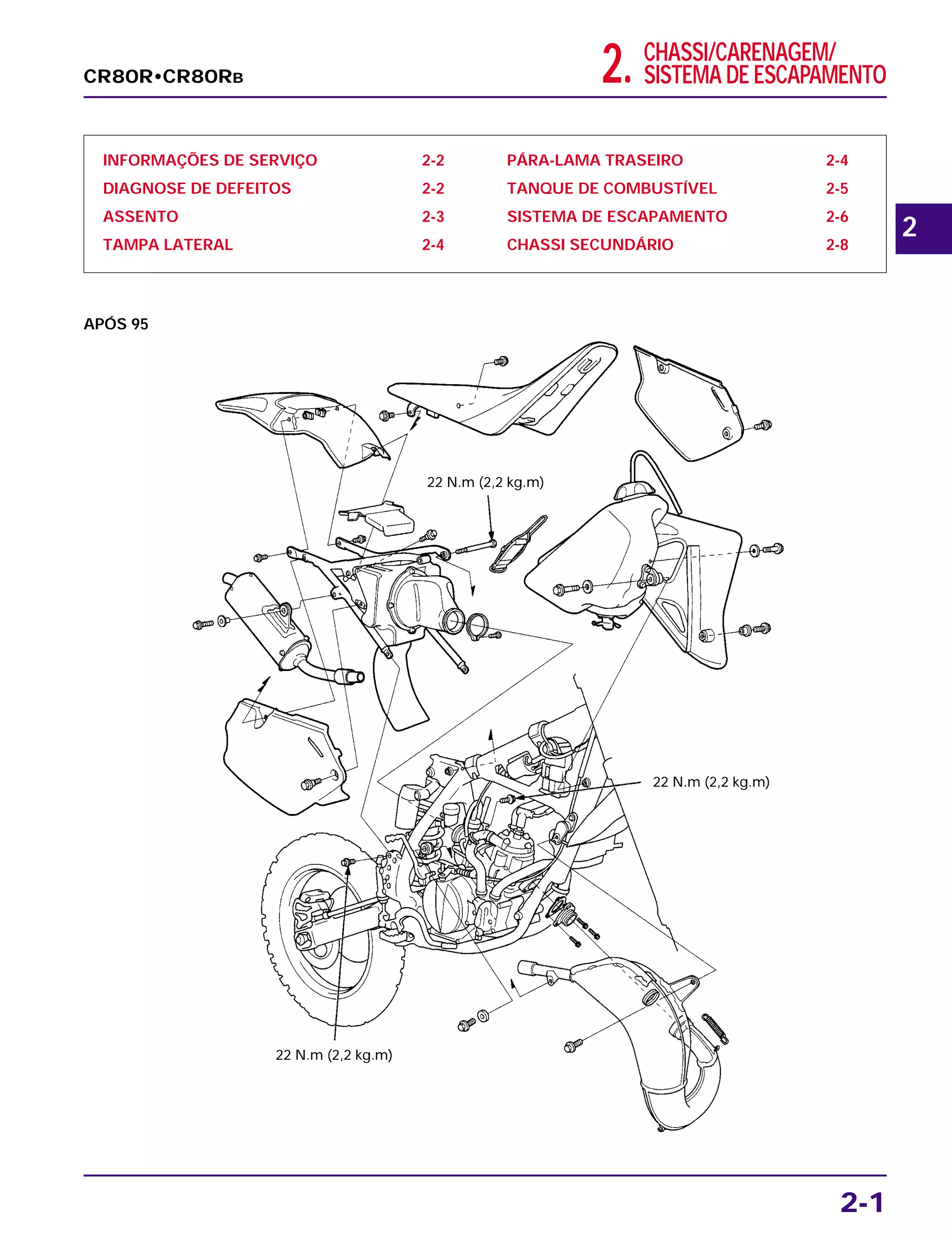 Porca e parafuso de fixação do chassi secundário (95) 22 N.m (2,2 kg.m)
