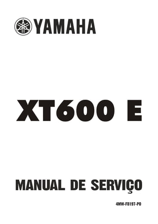 Este manual fornece instruções para a manutenção da motocicleta Yamaha XT600. Ele contém informações gerais, especificações técnicas, procedimentos de inspeção periódica, serviços no motor, chassi e sistema elétrico, além de solução de problemas. O manual destina-se a mecânicos autorizados Yamaha.