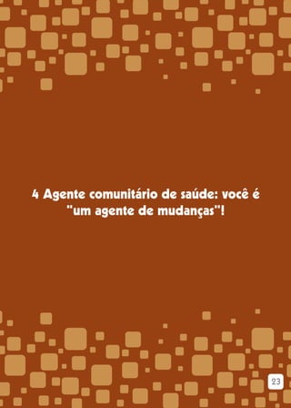 O documento descreve o trabalho do agente comunitário de saúde no Brasil. Em 3 frases: