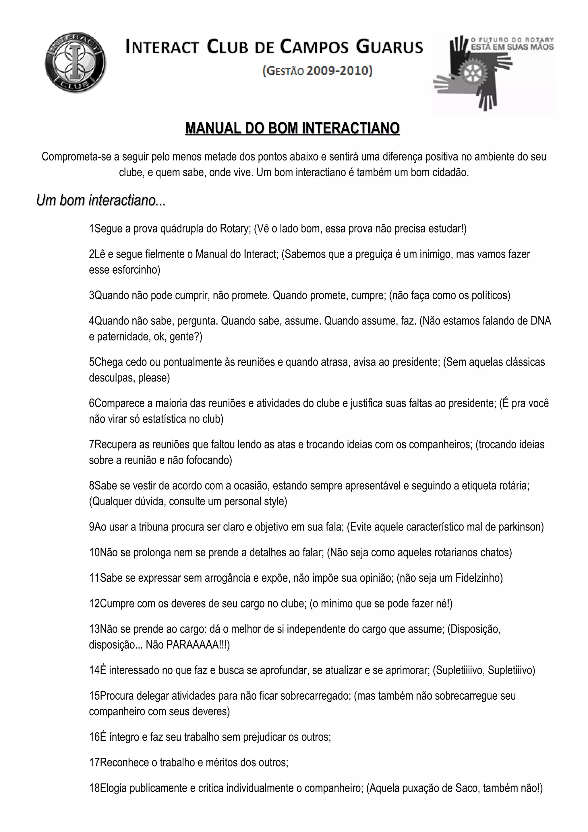 1. O documento apresenta 35 características de um bom interactiano segundo o Manual do Bom Interactiano.