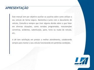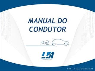 O manual do condutor F-OPE fornece orientações sobre como utilizar o veículo de forma segura, abordando tópicos como manutenção, revisões, documentação e segurança no trânsito. Importante destacar que as manutenções devem ser realizadas por funcionários autorizados e que o usuário é responsável por multas de trânsito. Além disso, o manual oferece dicas práticas para a condução segura e a condução responsável em situações adversas.