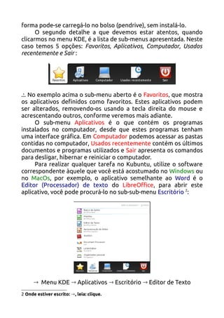 Este documento fornece uma introdução ao sistema operacional Linux Kubuntu, descrevendo seus principais recursos e comandos. Em 3 frases: