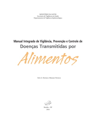 Este documento apresenta o Manual Integrado de Vigilância, Prevenção e Controle de Doenças Transmitidas por Alimentos do Ministério da Saúde do Brasil. O manual fornece diretrizes para o Sistema Nacional de Vigilância Epidemiológica das Doenças Transmitidas por Alimentos no Brasil, que tem como objetivo integrar as ações das áreas de vigilância epidemiológica, sanitária, laboratorial, assistência à saúde e outras na investigação, prevenção e controle de surtos de doenças transmitidas por
