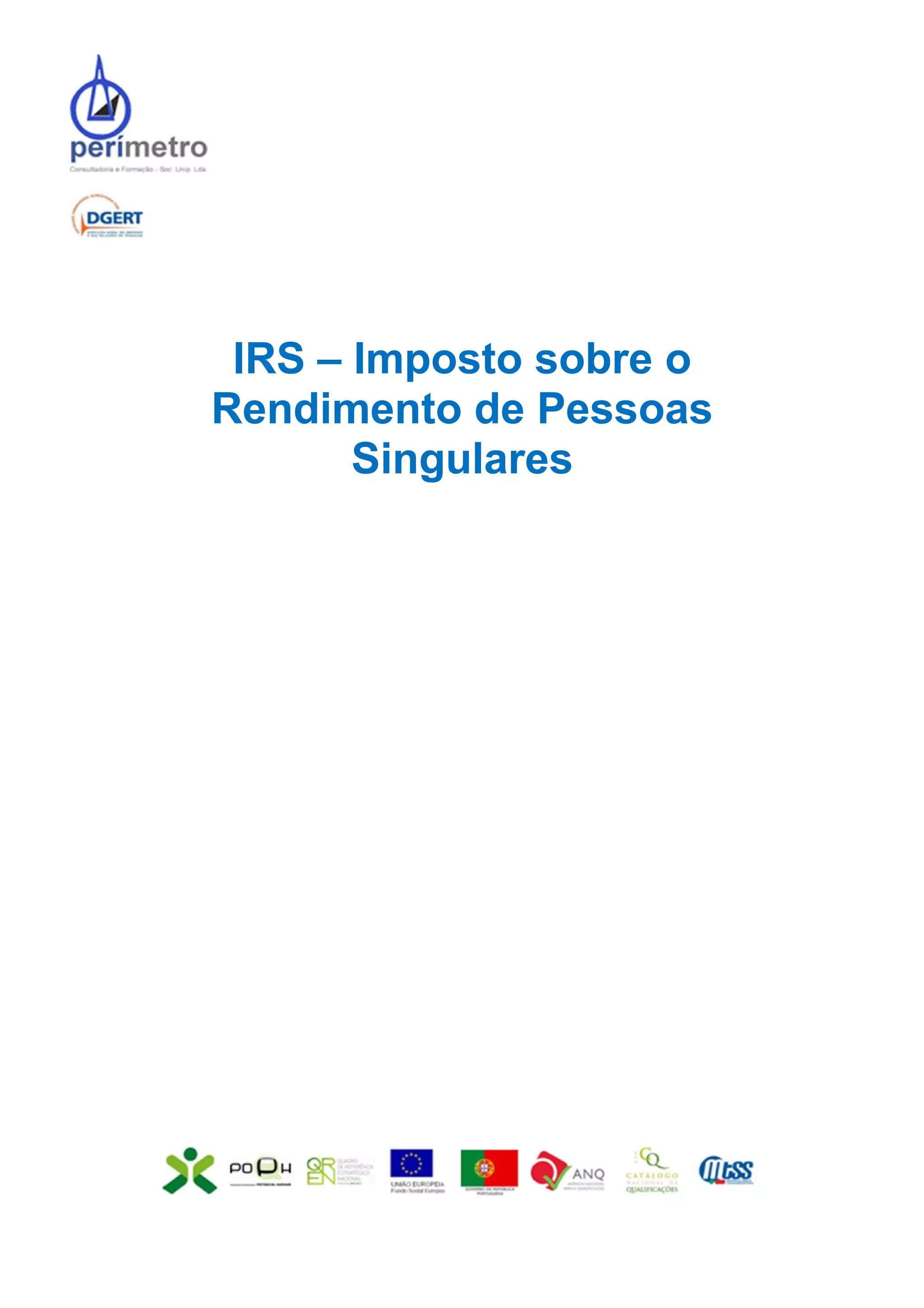 O IRS é um imposto sobre o rendimento das pessoas singulares em Portugal. Incide sobre seis categorias de rendimento: trabalho dependente, trabalho independente, capitais, propriedade, incrementos patrimoniais e pensões. Os contribuintes devem declarar anualmente seus rendimentos e podem deduzir certas despesas antes de calcular o imposto devido.