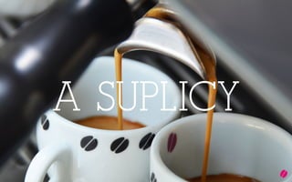 O documento fornece diretrizes sobre a marca Suplicy Cafés Especiais, incluindo seu logo, cores, tipografia, imagens e aplicações em diferentes materiais de comunicação. As regras estabelecidas visam garantir a qualidade visual da marca e um reconhecimento imediato.