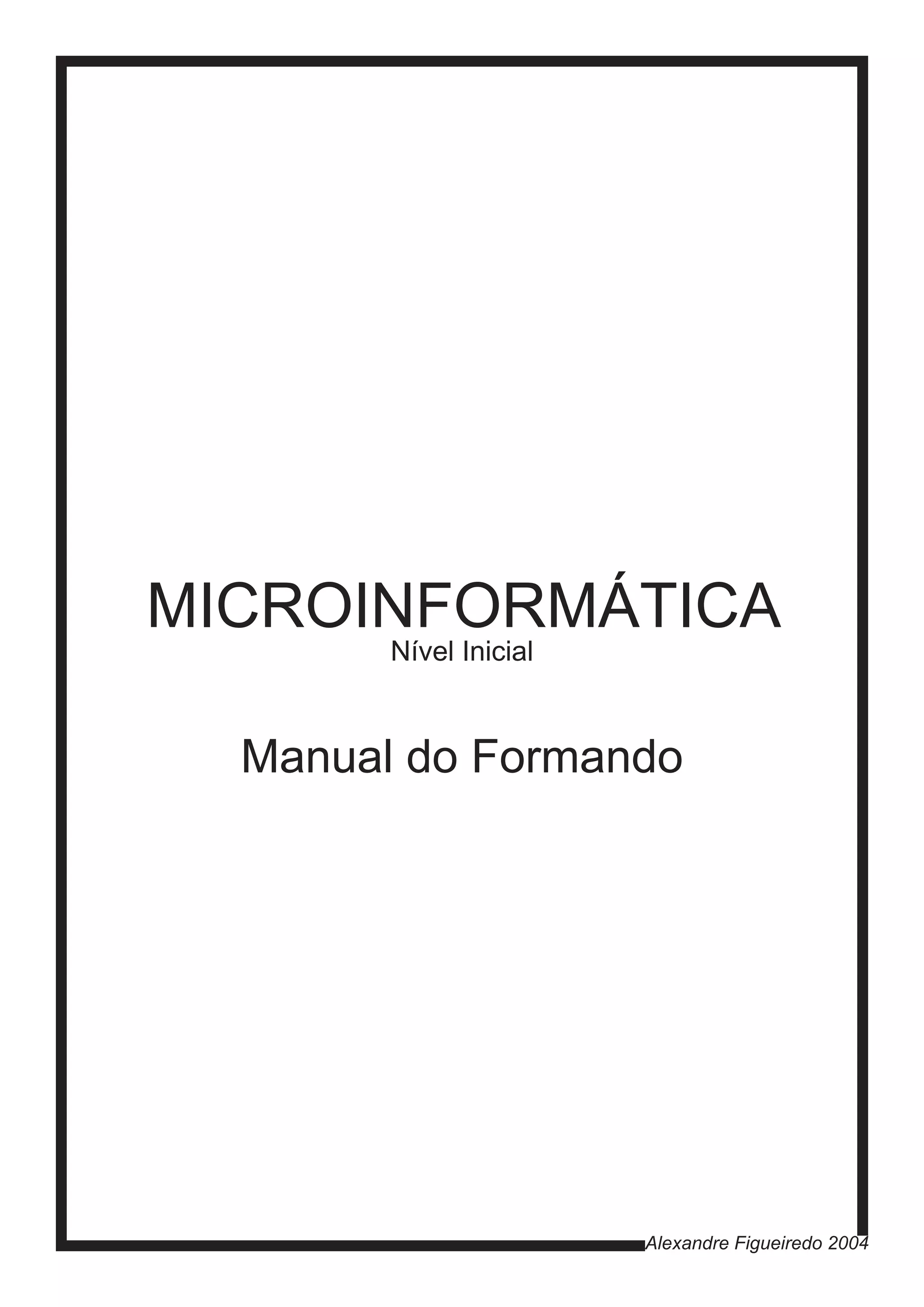 Este manual apresenta os principais componentes de um computador, incluindo hardware, software, sistemas operativos e aplicações. Detalha ainda os menus e comandos básicos de programas como o MS-DOS, Windows, Word e Excel para auxiliar na formação em informática básica.