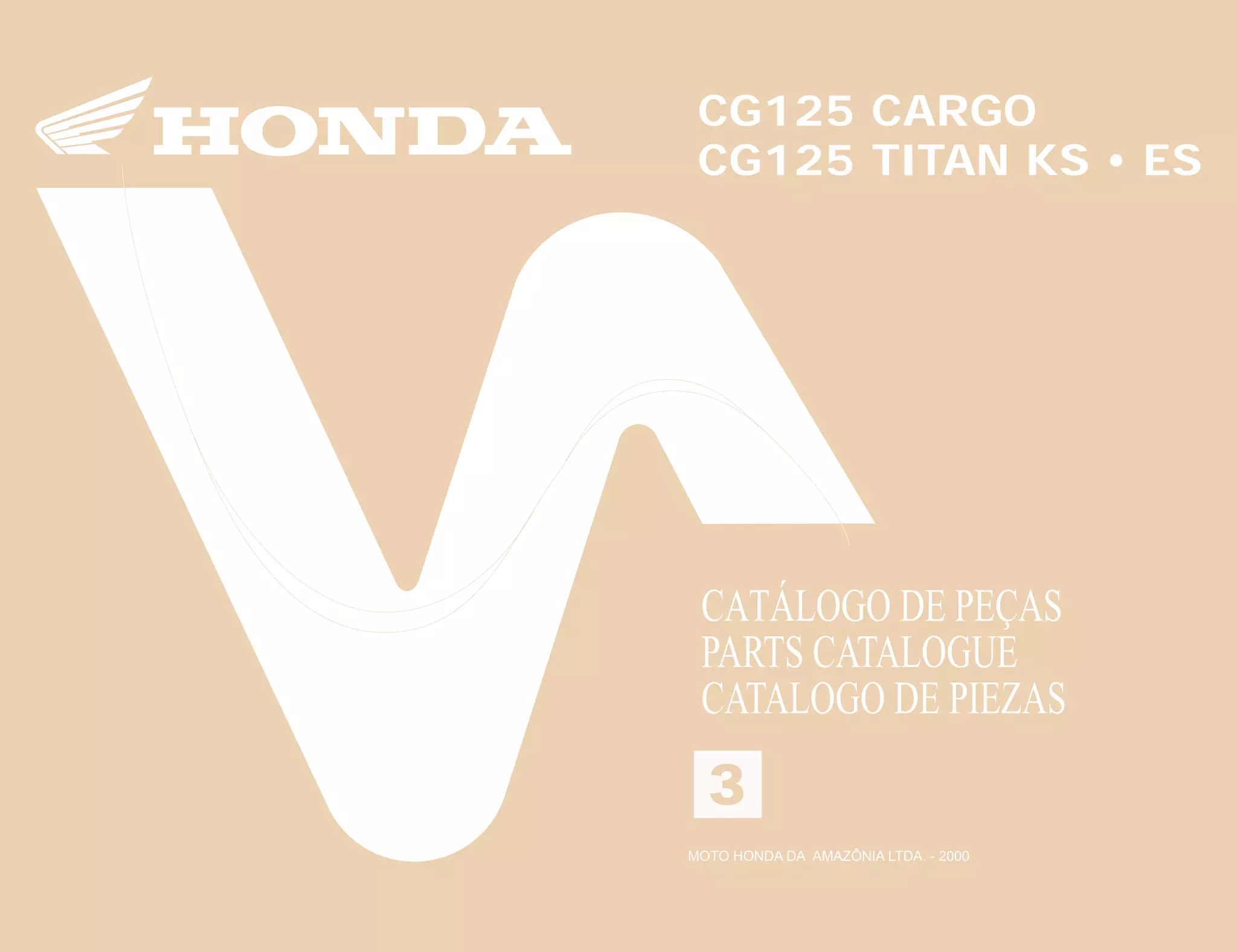 O documento fornece instruções e informações sobre o catálogo de peças para os modelos CG125 TITAN KS, CG125 TITAN ES e CG125 CARGO da Honda, incluindo um índice de número de peças, índice de nome de peças e instruções para uso.