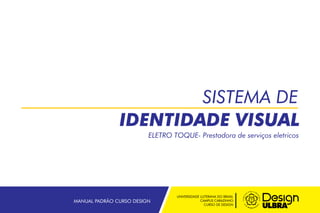O documento apresenta as diretrizes para o desenvolvimento de um sistema de identidade visual para a empresa Eletro Toque. Ele descreve os processos de brandstorming, definição da essência da marca, desenvolvimento do logotipo e manual com especificações técnicas sobre aplicação da marca, cores, tipografia, entre outros elementos visuais. O objetivo é estabelecer padrões gráficos que garantam a uniformidade e reconhecimento da marca Eletro Toque.
