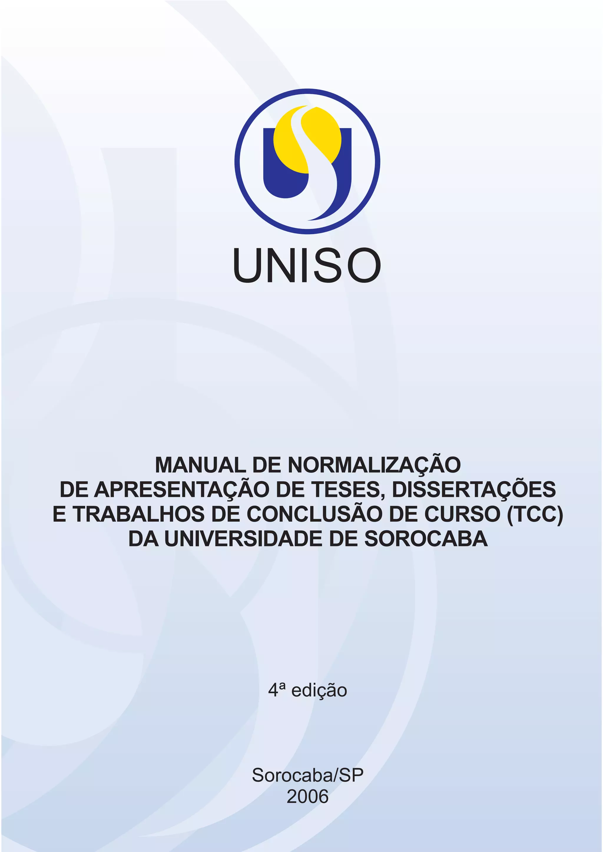 1. O documento apresenta as diretrizes para a normalização da apresentação de teses, dissertações e trabalhos de conclusão de curso da Universidade de Sorocaba, incluindo a estrutura, elementos pré-textuais, textuais e pós-textuais.