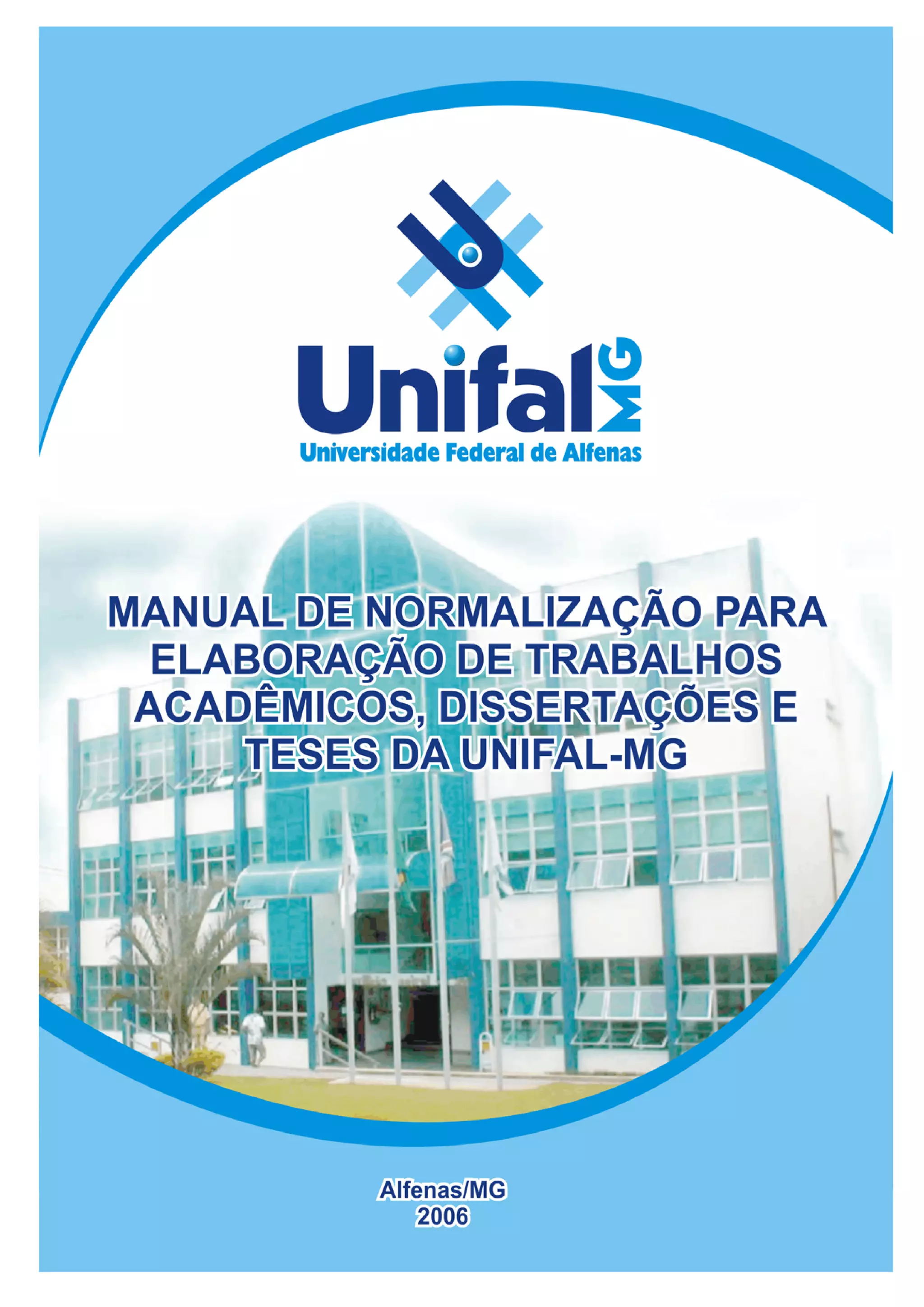 Este documento apresenta as normas para elaboração de trabalhos acadêmicos, dissertações e teses da Universidade Federal de Alfenas-MG (UNIFAL-MG). Ele define os tipos de documentos, estrutura de apresentação, elementos pré-textuais, textuais e pós-textuais, além de orientações sobre apresentação gráfica como formatação, paginação, numeração e uso de tabelas e ilustrações. O manual tem como objetivo padronizar a elaboração desses trabalhos na instituição.