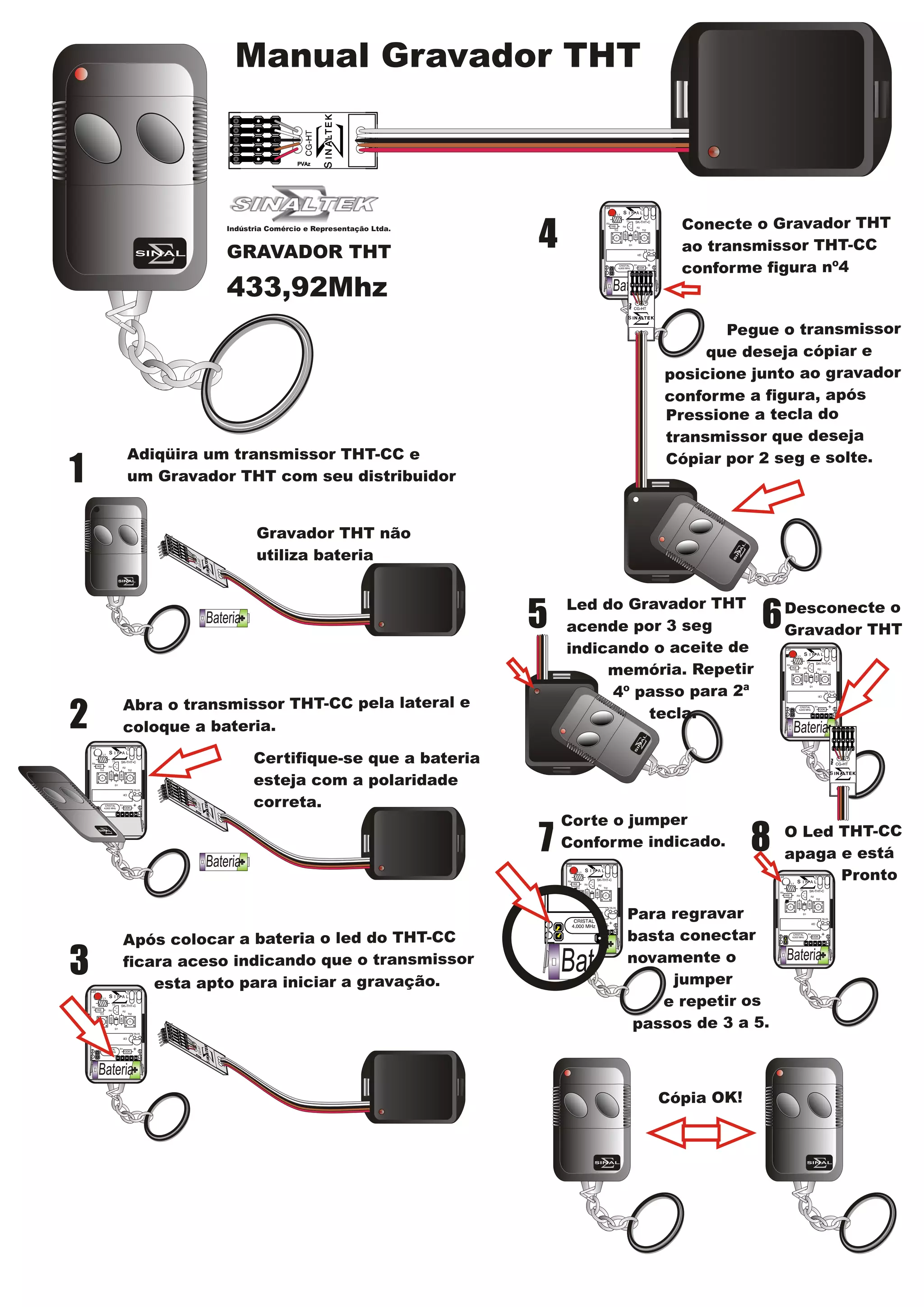 Manual com procedimentos para cópia (clonagem) de controles 433 Mhz da Sinaltek utilizando o Gravador THT-CC