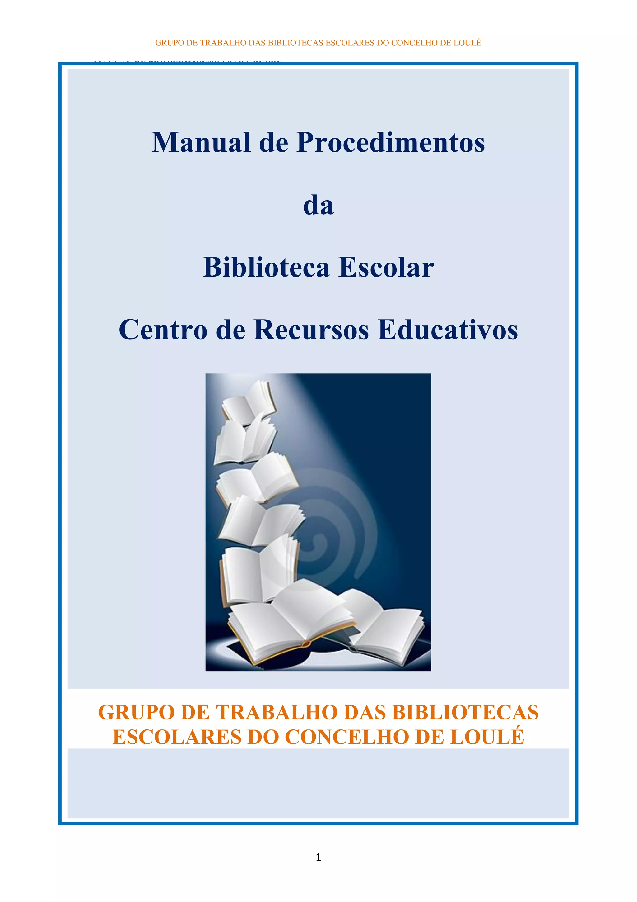Este documento apresenta as diretrizes e procedimentos padronizados para o tratamento de documentos nas bibliotecas escolares do município de Loulé, Portugal. Inclui informações sobre a aquisição, catalogação, classificação, indexação e armazenamento de diferentes tipos de materiais como monografias, publicações periódicas, mídias não impressas e recursos eletrônicos. Também descreve tarefas diárias na área de atendimento e a periodicidade de revisão deste manual.