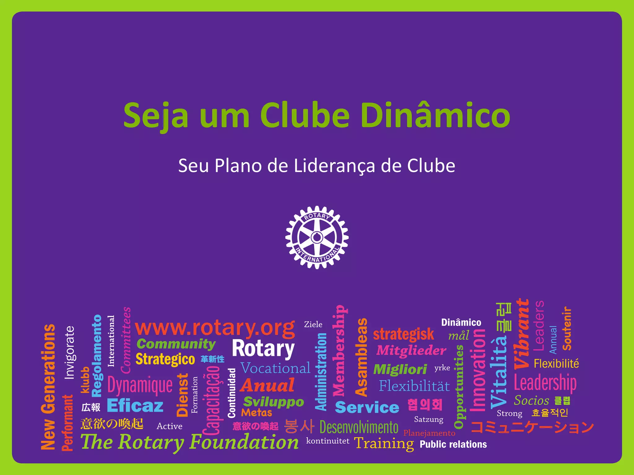 Este documento fornece um guia para ajudar clubes rotários a desenvolverem um Plano de Liderança dinâmico, enfatizando a inovação, o envolvimento dos associados e o alinhamento das metas do clube com as necessidades da comunidade. O guia discute dez melhores práticas como ter um plano estratégico, definir metas anuais e de longo prazo, realizar assembleias trimestrais, melhorar a comunicação e a continuidade da liderança. O objetivo é ajudar os clubes a avali