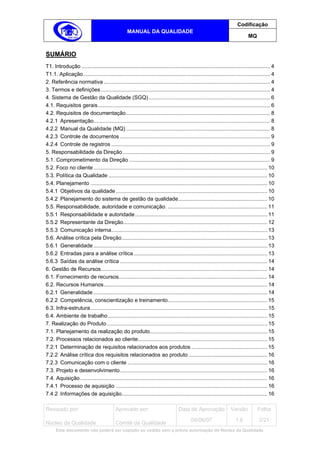T1. Este documento descreve o Sistema de Gestão da Qualidade implementado no Tribunal Regional Eleitoral de Goiás de acordo com a norma ISO 9001:2000, definindo seus processos, responsabilidades e documentação.