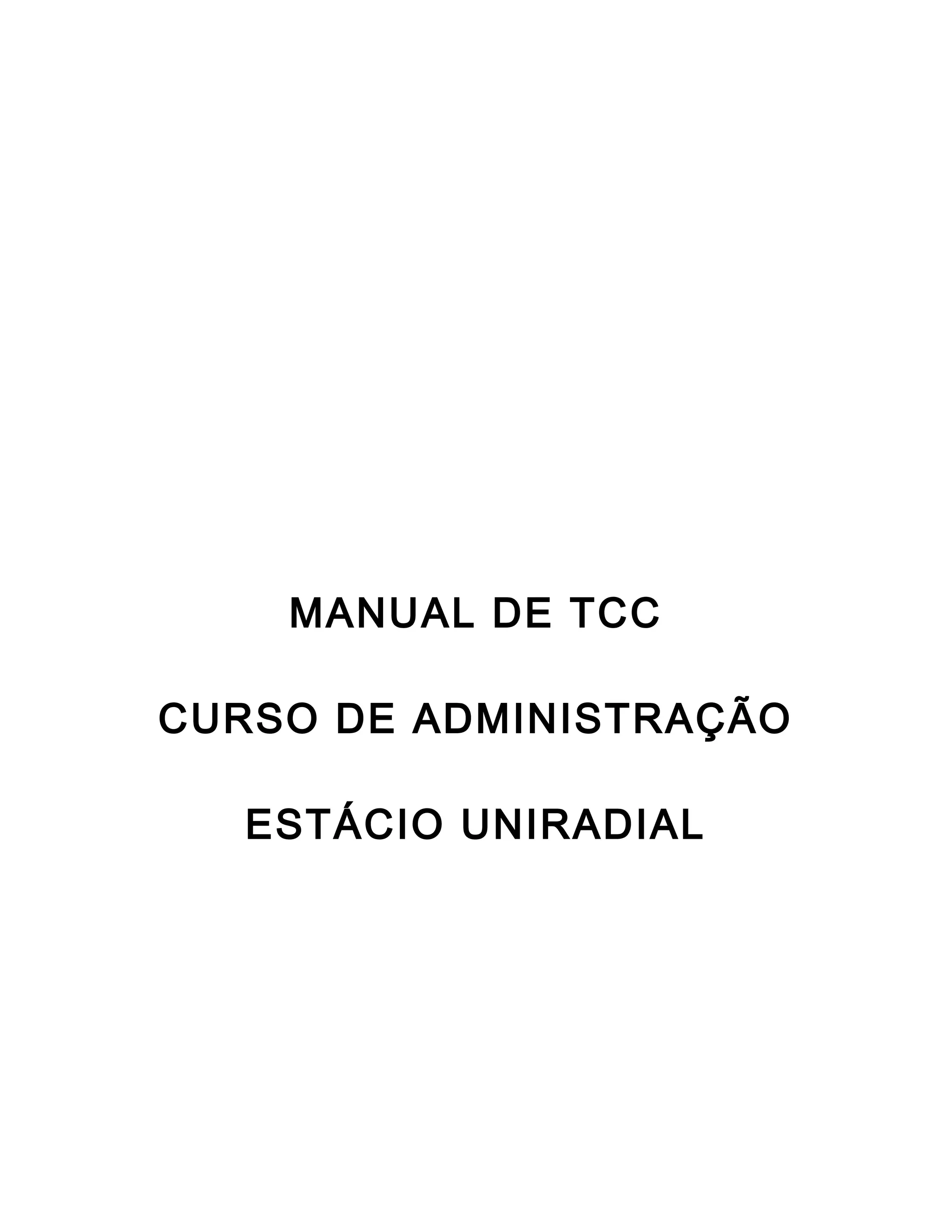 O documento apresenta as diretrizes para a elaboração do Trabalho de Conclusão de Curso (TCC) do curso de Administração da Estácio Uniradiar. O TCC consiste em um Diagnóstico Organizacional de uma empresa real que deve avaliar fatores externos, organizacionais e individuais. O documento descreve as etapas do TCC, os critérios para escolha da organização e composição das equipes de alunos.