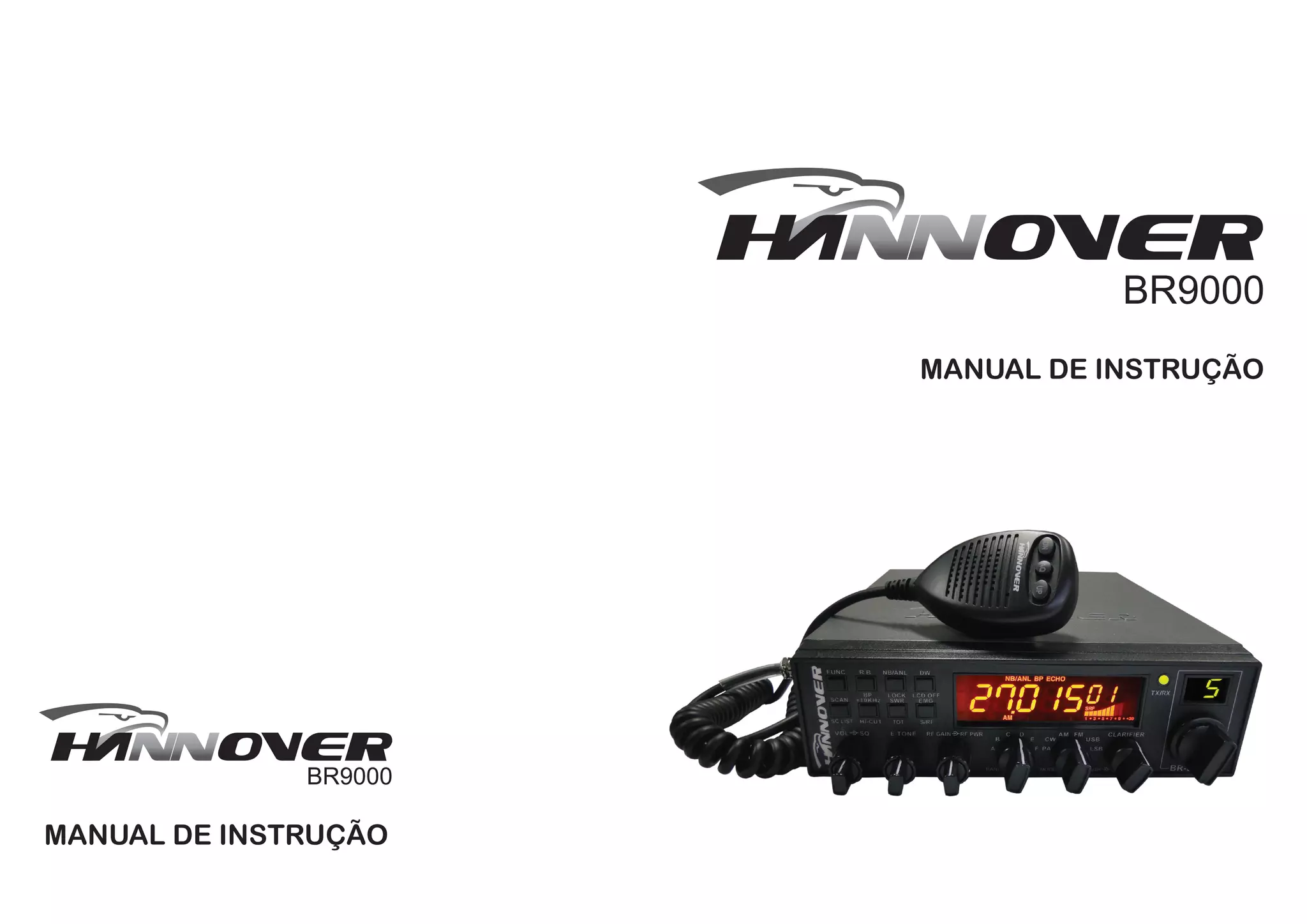 O manual de instruções descreve como instalar e operar o rádio CB Hannover BR9000. Ele contém informações sobre conectar a antena e a alimentação, ajustar a capacidade de sinal, usar os recursos do painel frontal e traseiro, e os procedimentos básicos de recepção e transmissão.