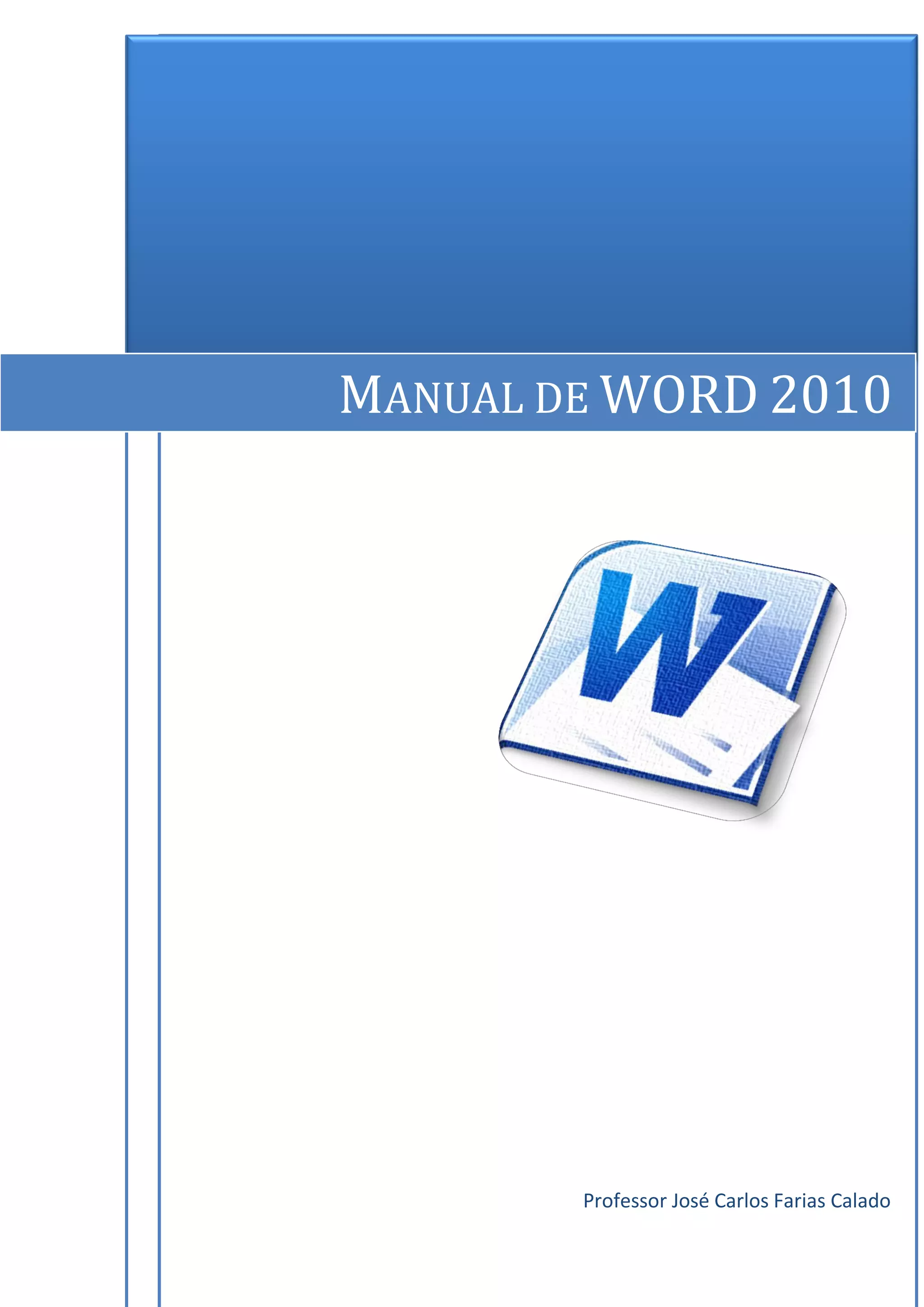 Este manual fornece instruções sobre como usar as principais funções do Word 2010, incluindo formatar texto, alterar margens, inserir marcas d'água e usar o novo friso de opções. Explica como localizar e substituir texto, alterar estilos de parágrafo e aplicar formatação como negrito e itálico. Também descreve como ampliar, reduzir e alterar a orientação de páginas no Word 2010.