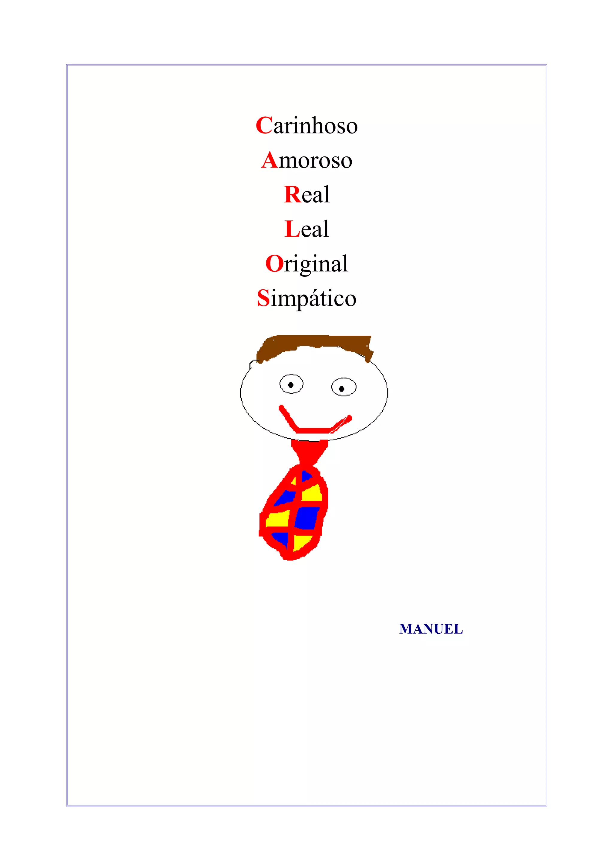 O poema descreve alguém chamado Manuel como carinhoso, amoroso, real, leal, original e simpático.