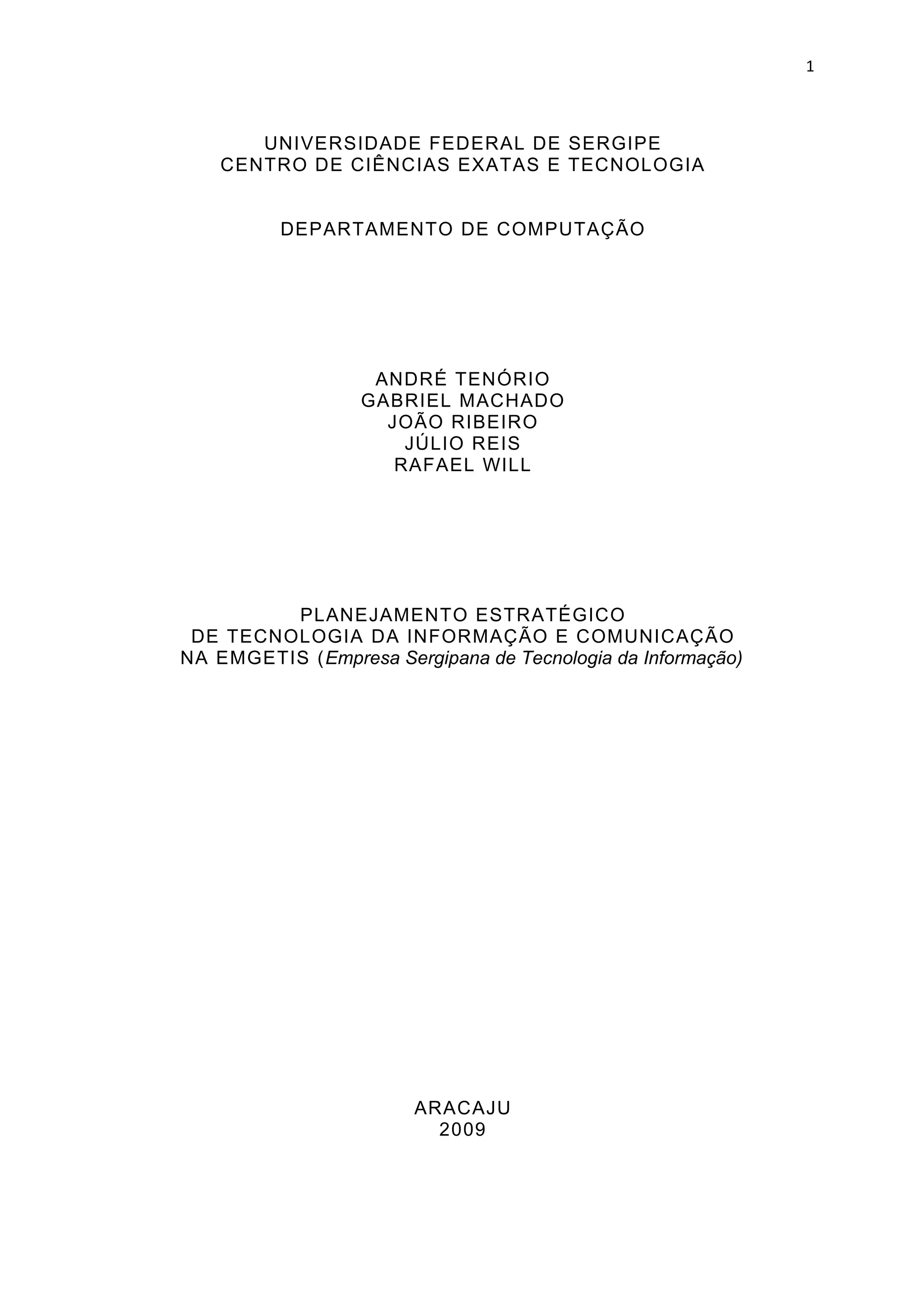 Este documento apresenta um planejamento estratégico de tecnologia da informação e comunicação para a EMGETIS. Ele descreve o estado atual e desejado de hardware, software, dados, pessoas e telecomunicações na empresa e propõe novas tecnologias como assinatura digital, VoIP e thin clients para melhorar a infraestrutura de TI. O documento visa tornar os sistemas da EMGETIS mais robustos, seguros e eficientes.