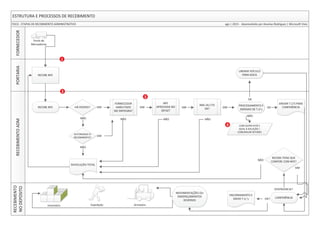 O documento discute a estrutura e os processos de recebimento administrativo, destacando sugestões para melhorar a eficiência, como agendamento de recebimentos e alocação de funcionários para pré-entrada de notas. Também enfatiza a importância de otimizar a comunicação entre setores e eliminar erros por meio do uso de tecnologia na entrada de dados. As sugestões visam reduzir o tempo de processamento, minimizar erros e melhorar a gestão de pátio e docas.