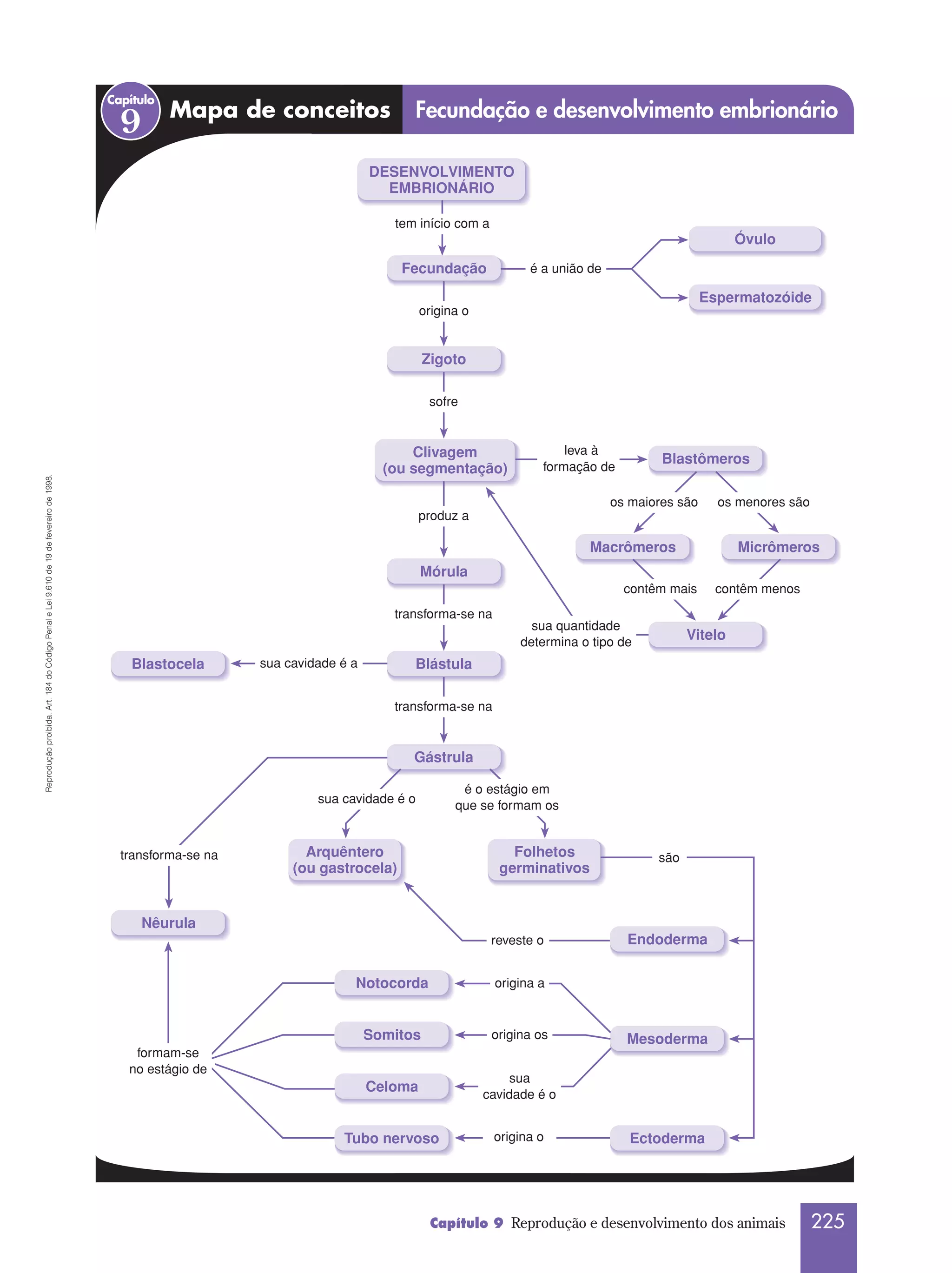 O documento descreve as principais etapas do desenvolvimento embrionário desde a fecundação até a formação dos três folhetos germinativos. A fecundação origina o zigoto, que sofre clivagem formando blastômeros. A blastula transforma-se na gástrula, cuja cavidade é a blastocela. A gástrula transforma-se na nêurula, período em que se formam os somitos e a notocorda.