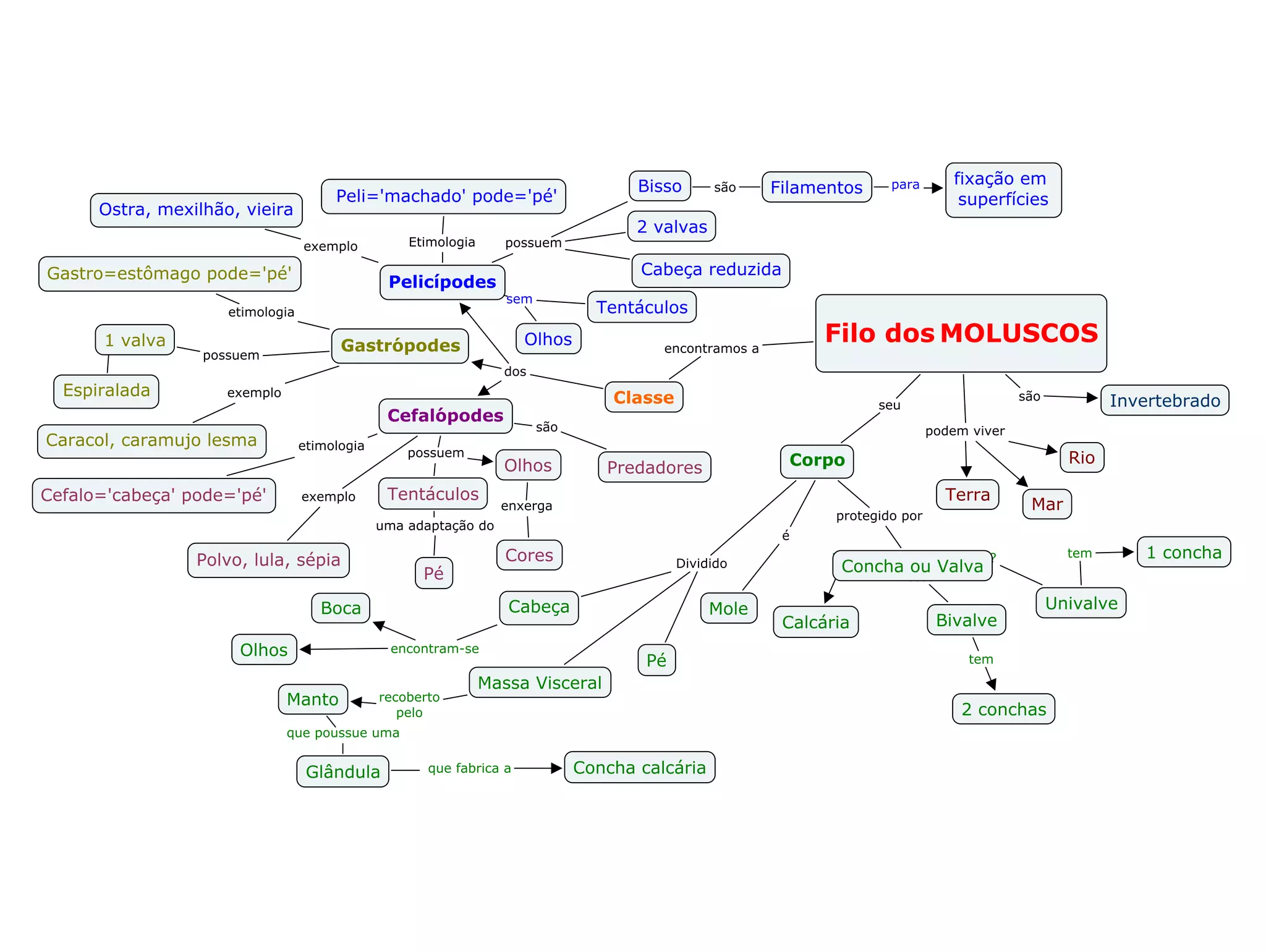 Mapa Conceitual sobre MOLUSCOS, animal de corpo mole. Produzido: Profª Teresa Cristina Honório Público alvo: 7º ano do EF