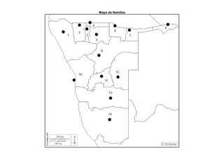 3) Escreva no mapa o nome das regiões e das capitais regionais da Namíbia.