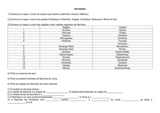 1) Escreva nomapa o nome do oceano que banha a Namíbia: Oceano Atlântico.