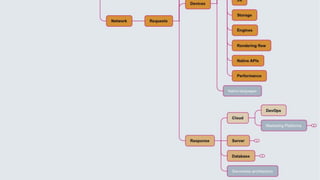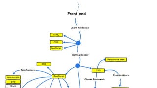 O documento aborda um mapa de aprendizado para desenvolvedores front-end, destacando a importância de conectar conhecimentos técnicos com experiências gerais. Ele explora áreas como programação, redes, renderização em navegadores e performance, oferecendo uma estrutura para a formação na área. A palestra visa inspirar os participantes a aprofundar-se em temas relevantes e compartilhar conhecimentos entre diferentes áreas.