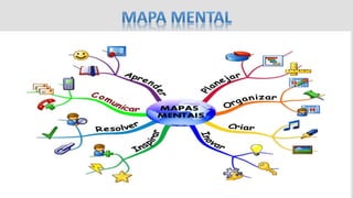 Mapa mental é um diagrama radial que conecta palavras-chave e ideias a uma ideia central, usado para visualizar, organizar e gerar ideias. Mapa conceitual representa relações hierárquicas entre conceitos de forma esquemática. Embora semelhantes, mapas mentais se concentram em uma ideia central enquanto mapas conceituais conectam várias ideias usando teorias cognitivas de aprendizagem.