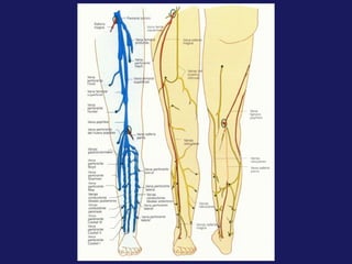 O documento resume o exame de ultrassom colorido Doppler para avaliação da insuficiência venosa dos membros inferiores. O exame permite verificar a competência das válvulas venosas, medir diâmetros de veias, localizar perfurantes insuficientes e avaliar o sistema venoso profundo. O laudo descreve os achados como trechos com refluxo, diâmetros de veias e localização de perfurantes.