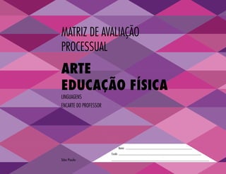 Este documento apresenta matrizes de referência para a avaliação processual de componentes curriculares da educação básica no estado de São Paulo, incluindo Arte e Educação Física. As matrizes definem os conteúdos, competências e habilidades que devem ser desenvolvidos ao longo dos anos/séries e orientar a elaboração de provas de avaliação. O documento tem como objetivo apoiar professores e gestores na implementação do currículo oficial e melhoria da aprendizagem dos estudantes.