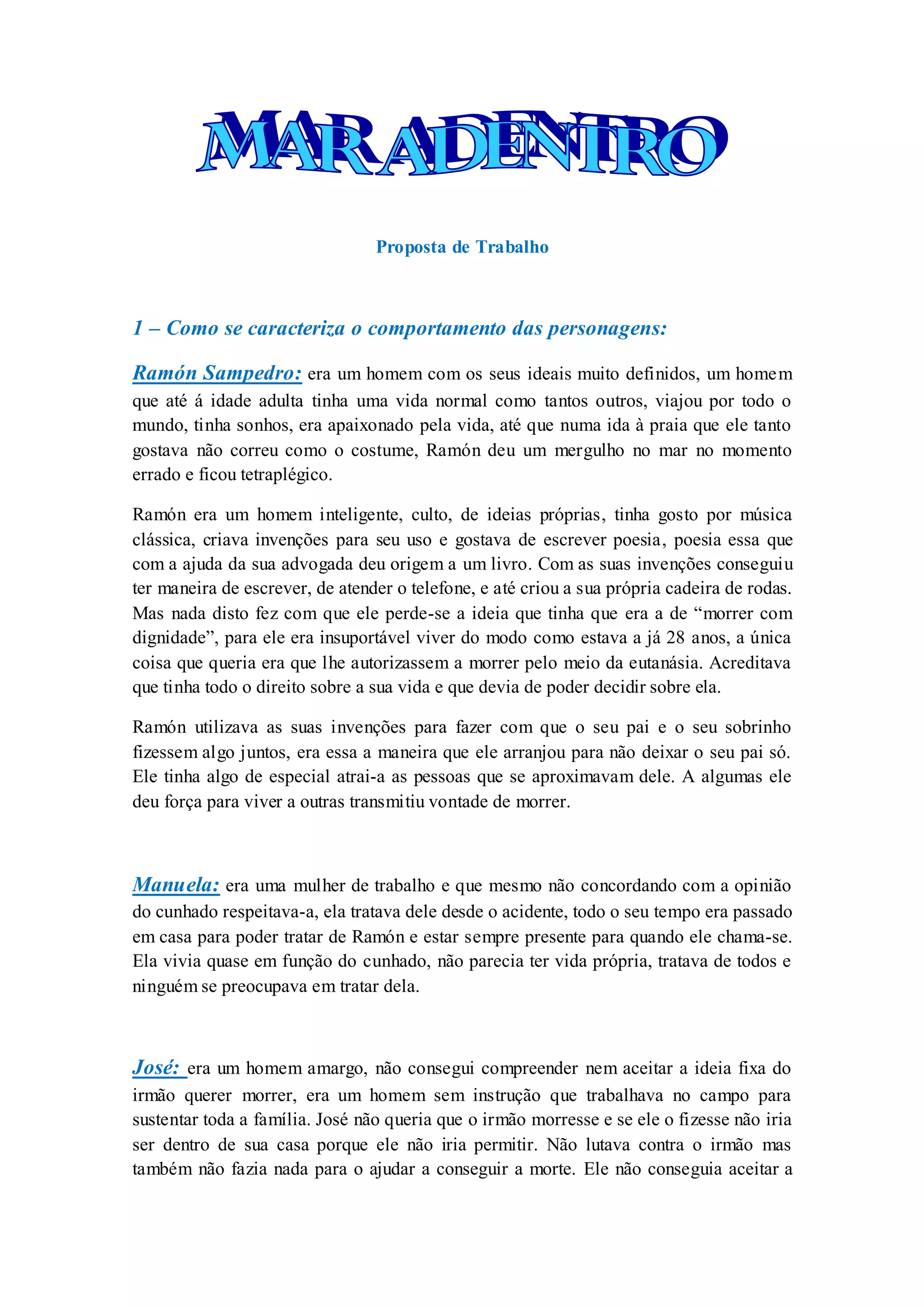 Ramón, caminhando com ele para a morte. Mais tarde desistiu da ideia de morrer