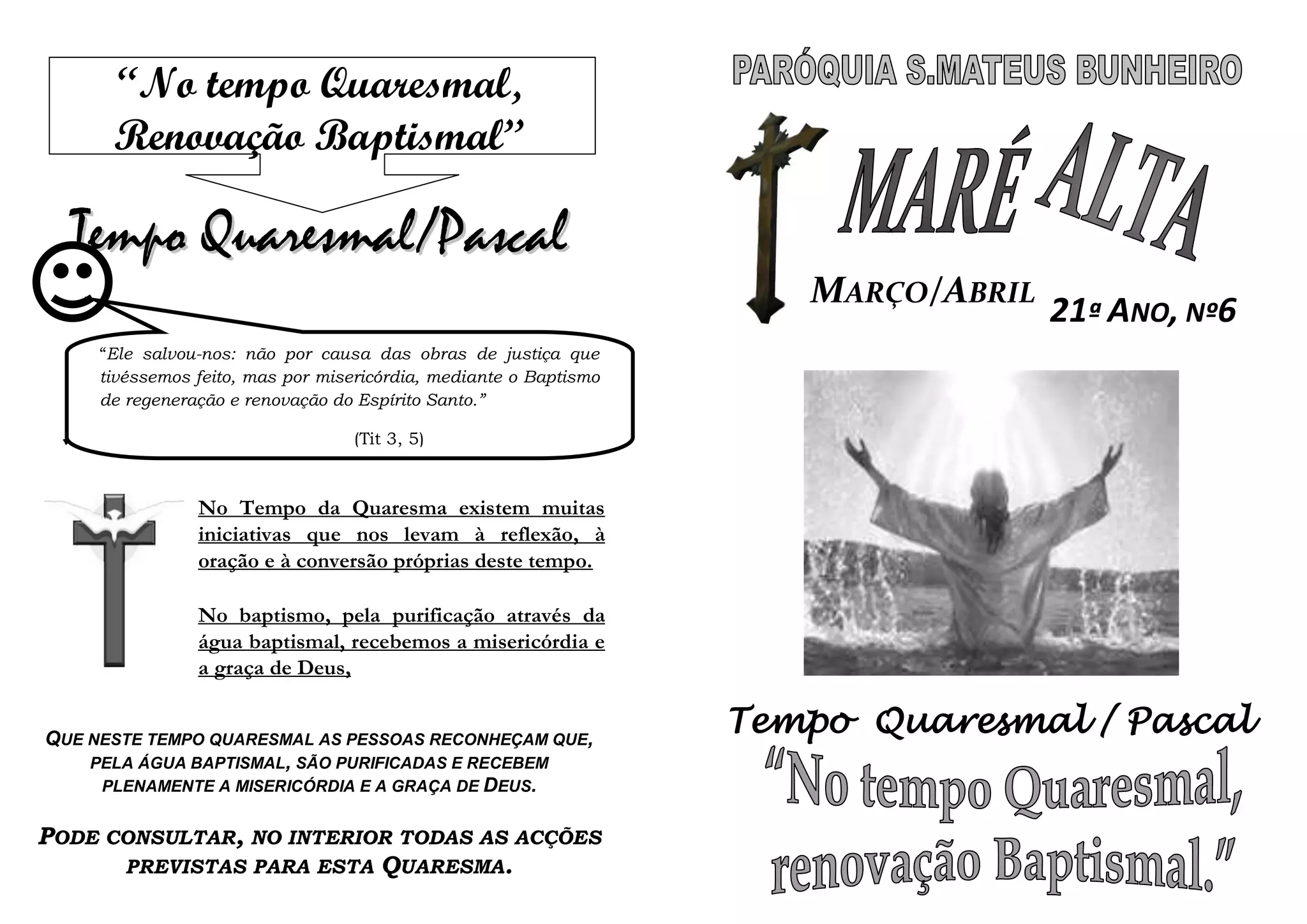 Este documento descreve as tradições e celebrações da Quaresma em algumas zonas da paróquia, incluindo os cortejos de S. Brás. Relata testemunhos sobre a alegria da preparação e participação nestas celebrações, que ajudam as pessoas a se sentirem renovadas pelo batismo.