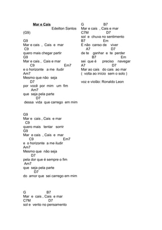 A música descreve a relação entre o mar e o cais, com o cantor querendo navegar entre eles. Ele fala sobre o horizonte o iludindo e como quer continuar tentando sorrir, mesmo com a dor que sempre termina. O cantor sabe que precisa continuar navegando entre o mar e o cais, ganhando e perdendo seu amor.