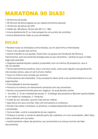 por semana; Ensinar 02 downlines a apresentar o plano; Fazer 01 contato frio por dia;