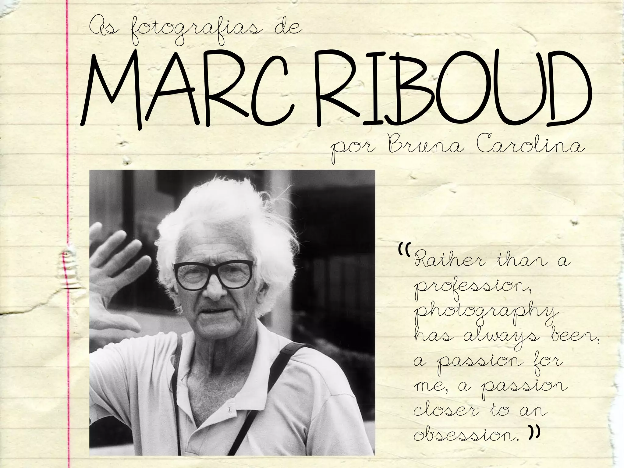 Marc Riboud foi um fotógrafo francês reconhecido por seus registros das culturas asiáticas ao longo de décadas de viagens. Sua paixão pela fotografia começou cedo e ele se tornou membro da agência Magnum em 1953, documentando importantes momentos históricos em lugares como Vietnã, China e África. Suas fotos capturam detalhes curiosos e perspectivas únicas, revelando insights sobre diferentes culturas e épocas.