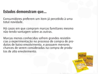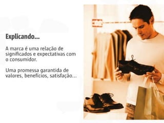 1. O documento descreve a história do uso de marcas ao longo dos tempos, desde a antiguidade com gregos e romanos identificando seus produtos até a era moderna com marcas se tornando ativos intangíveis importantes para empresas.
