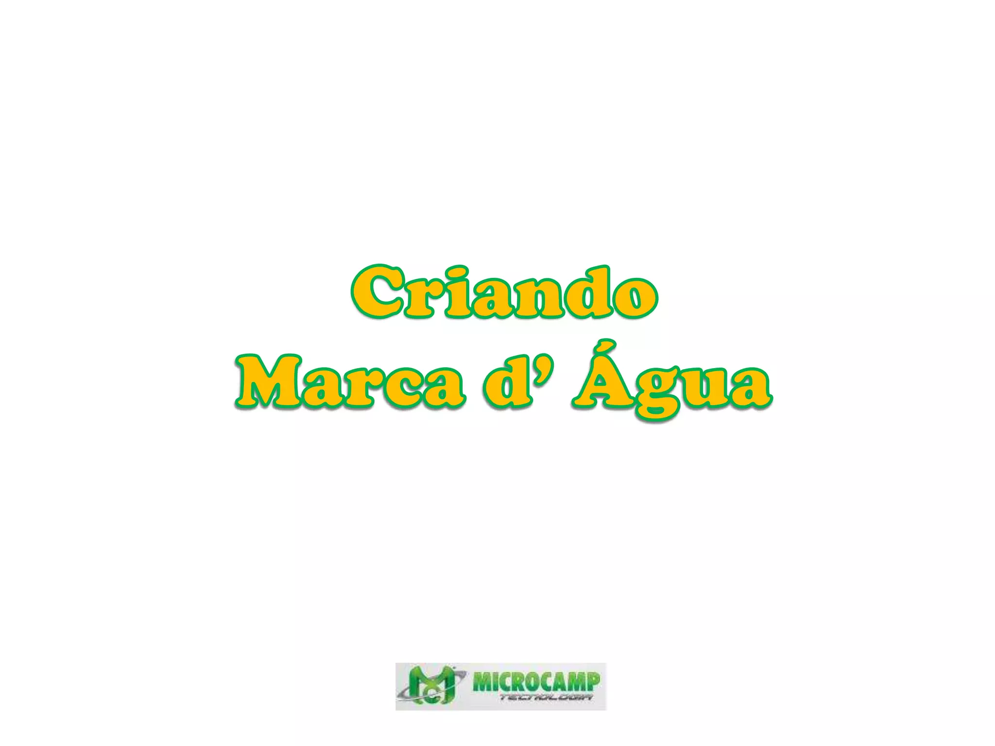O documento explica como criar marcas d'água em documentos do Microsoft Word 2007. Ele descreve como adicionar marcas d'água de imagem ou texto, alterando propriedades como transparência, cor e estilo de fonte. Também mostra como remover uma marca d'água existente.