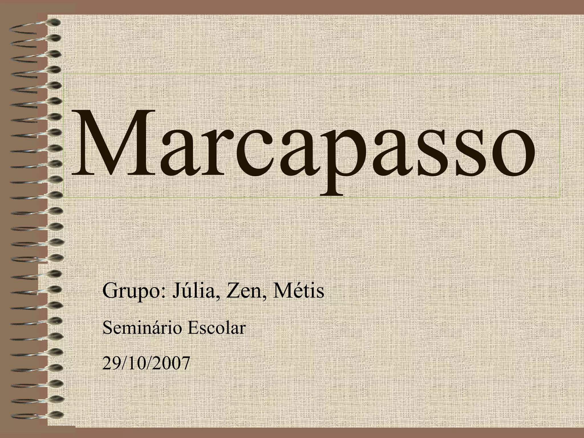 Marcapasso é um dispositivo médico implantável que emite estímulos elétricos para regular os batimentos cardíacos. O documento descreve como os marcapassos modernos são implantados cirurgicamente, o procedimento de implante, os riscos envolvidos e os cuidados pós-operatórios.