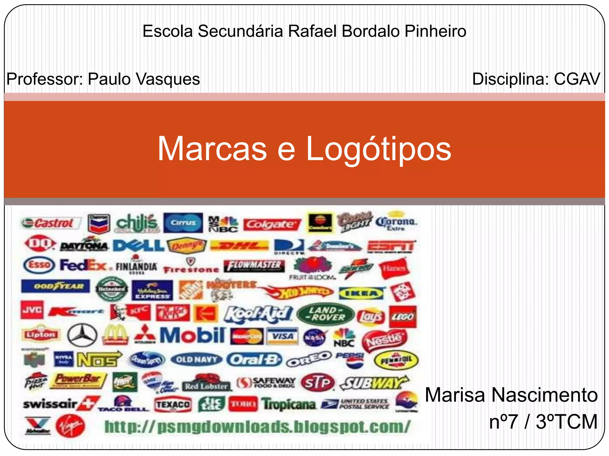 O documento discute definições de marcas, logótipos, símbolos e tipografia. Define marca como a representação simbólica de uma empresa que permite identificá-la rapidamente, logótipo como a maneira como o nome da marca é representado graficamente, símbolo como um elemento representativo essencial na comunicação, e tipografia como a arte da composição de texto físico ou digital.