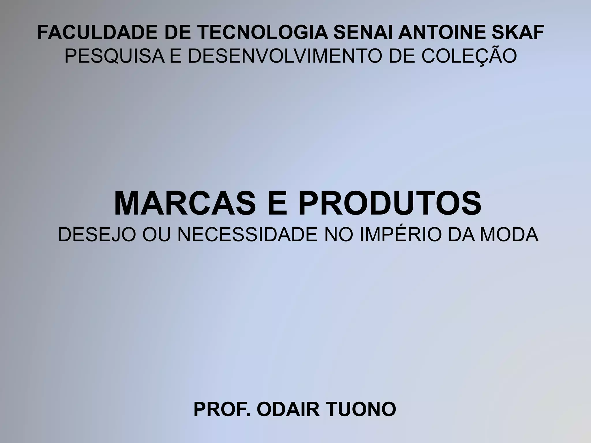 O documento discute os elementos essenciais para o desenvolvimento de uma marca de sucesso, incluindo nome, logotipo, símbolo, mascote, embalagem, registro e evolução. Também aborda a segmentação de mercado por gênero e faixa etária e como marcas podem atender a uma variedade de desejos dentro de cada nicho.