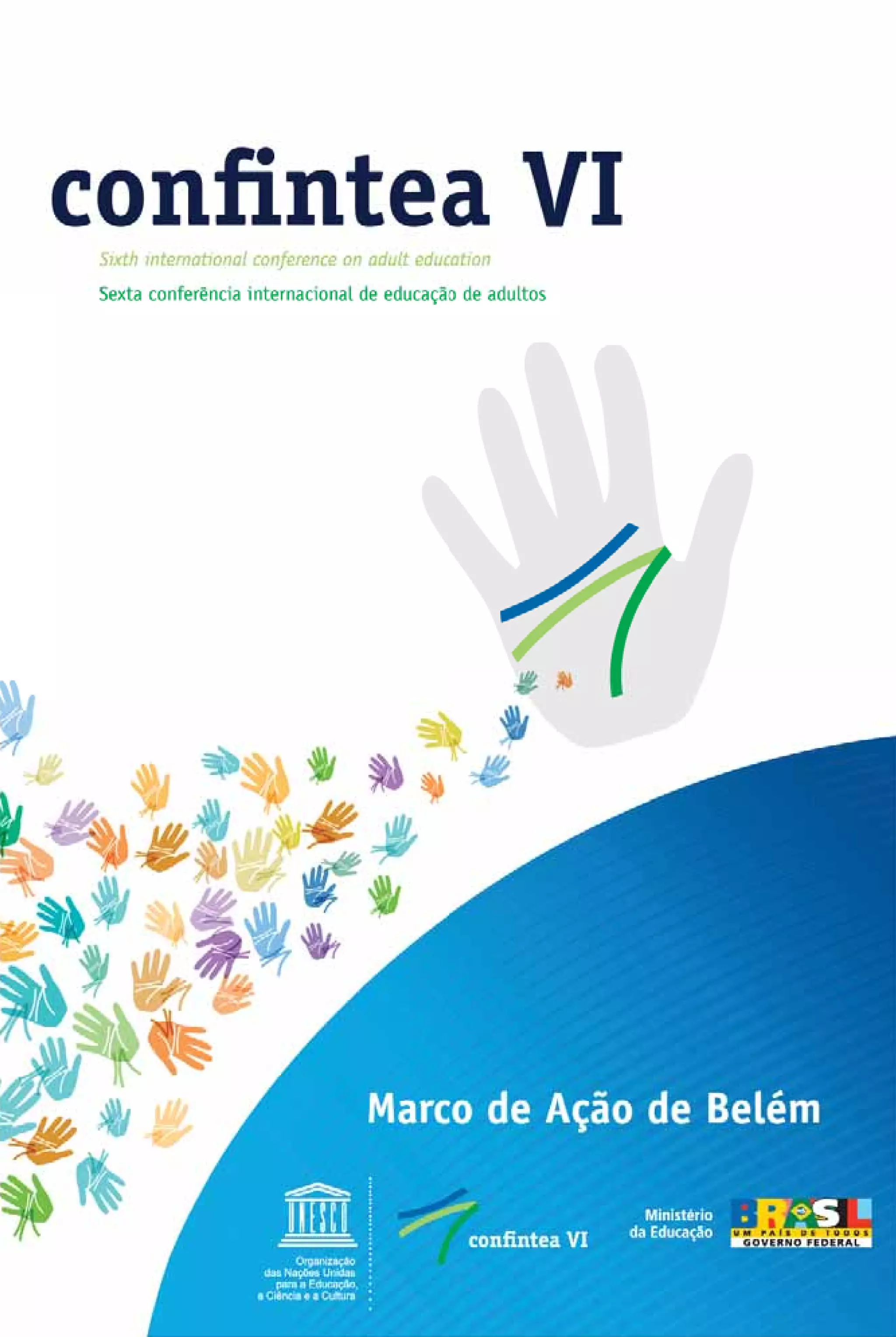 Este documento apresenta o Marco de Ação de Belém, resultado da Sexta Conferência Internacional de Educação de Adultos (CONFINTEA VI) realizada em Belém, Brasil, em 2009. O marco reafirma o papel fundamental da educação de adultos e estabelece recomendações para promover a aprendizagem ao longo da vida, priorizando a alfabetização de adultos. O documento também enfatiza a importância de políticas abrangentes e financiamento para garantir o direito à educação de jovens e adultos.